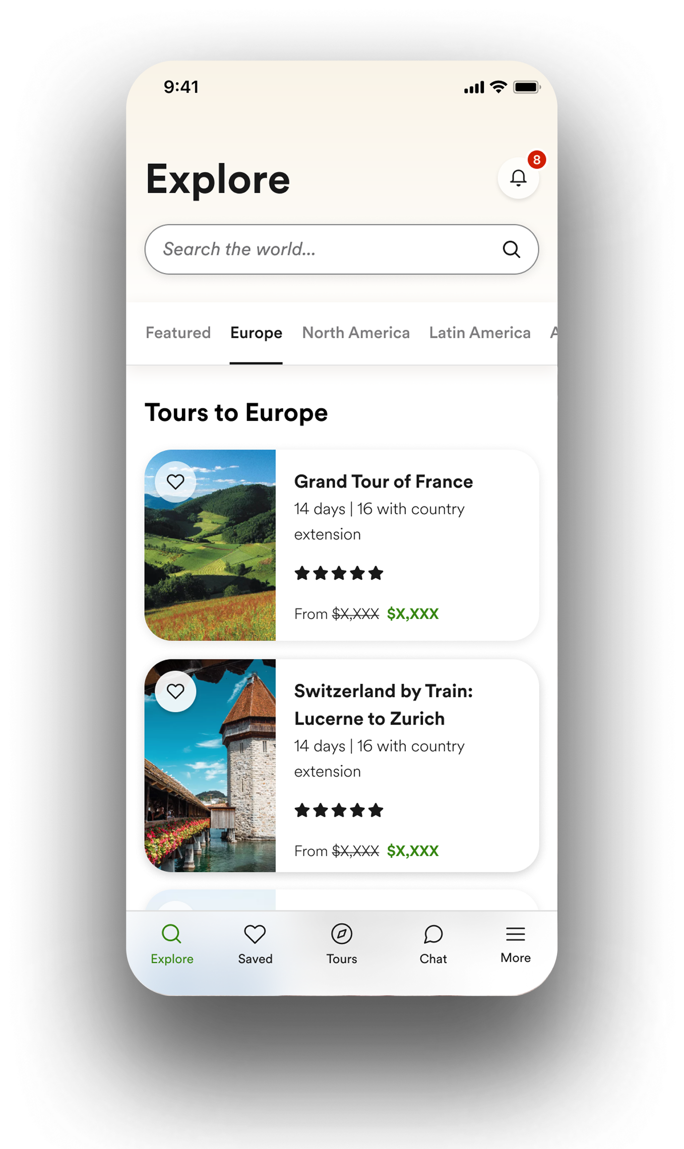 Primary entry point for browsing tours