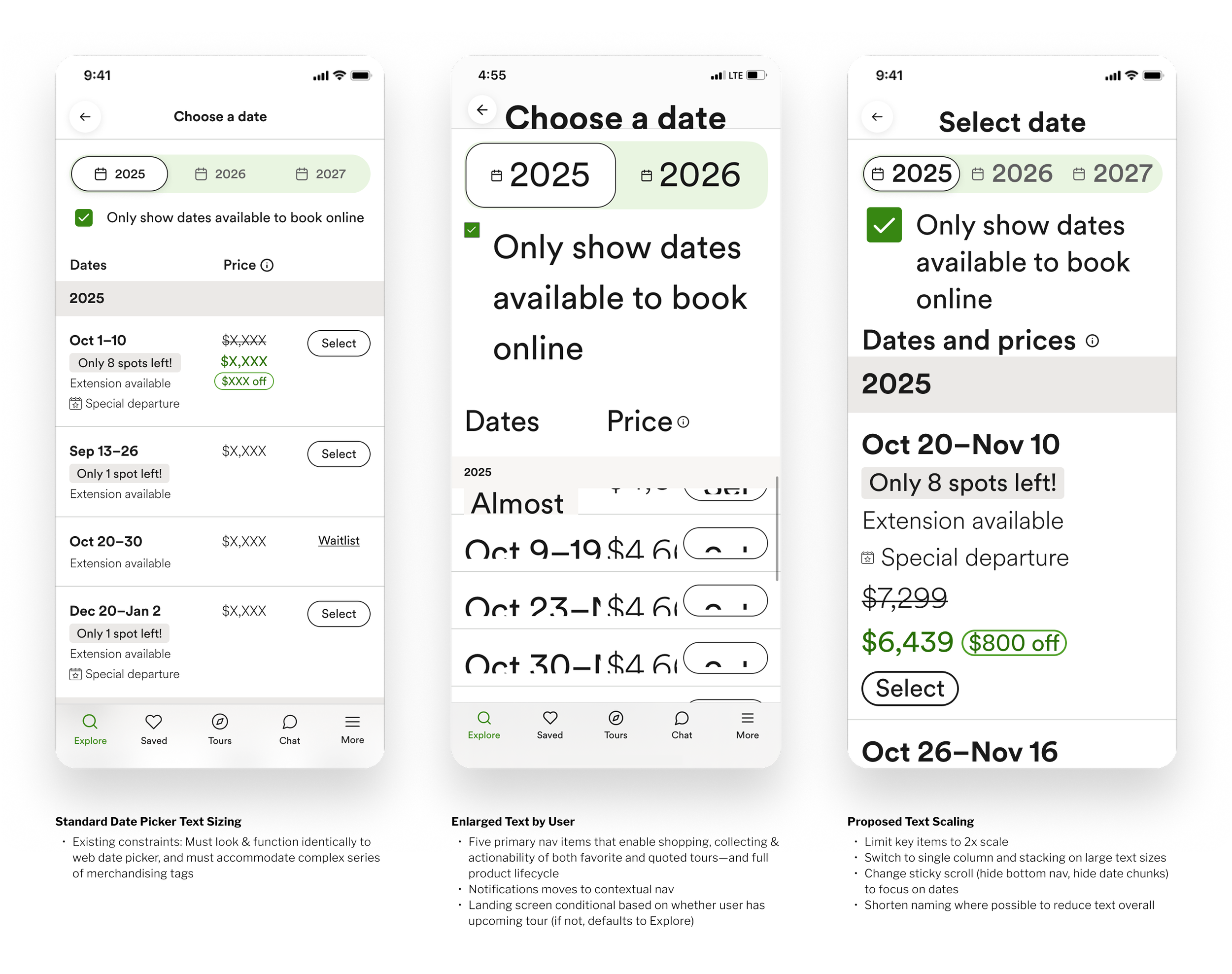 One key improvement was redesigning the date picker, a critical decision point in the flow.